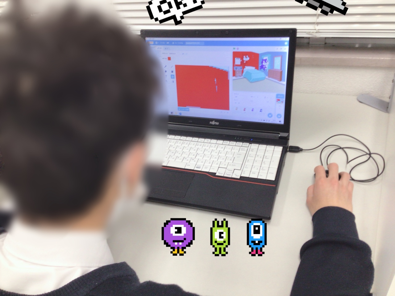 試行錯誤を重ねる姿はとても真剣で、集中して画面に向かう姿が印象的です。