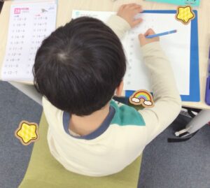分からない所はヒントをもらいながら考えたり、自分で答えを見つけようと頑張る姿が見られます。