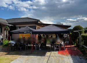 BBQ会場はクラップ旭校の教室前。テントを張り、BBQコンロ二台ご用意し、前日に下ごしらえをした食材をふんだんに使いBBQはスタートしました。つづく