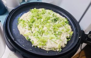 お勉強の後にほっと一息。ご利用者様のご家族様より頂いたキャベツを使用し、児発管特製のお好み焼きを作りました。