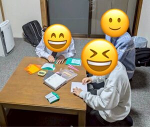 折り紙やコピー用紙で自分だけの紙飛行機を折り、「誰が一番遠くまで飛ばせるかな?」と競争しました。
