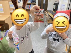 クリスマスプレゼントとして、お菓子の入った巾着を子どもたちに配りました🎅