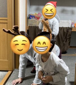 サンタの帽子やトナカイのカチューシャをつけて、教室はすっかりクリスマスムード♪