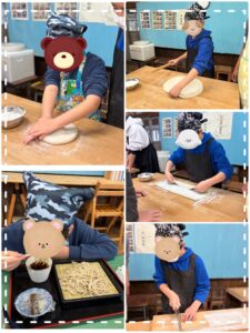 4/1に田舎体験施設 朝日里山学校で蕎麦打ち体験を行いました😊