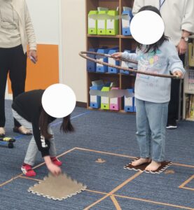 今回は2人でフラフープに入ってリレーをしたよ🏃💨