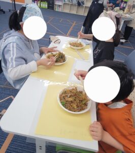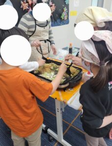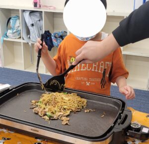 お肉を裏返したり、ヘラを使ってソースと混ぜたり、やり方を教えてもらいながら頑張ったね💪