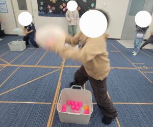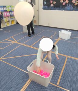 隣の箱に移動して、同じやり方で今度はボールを入れるよ😃