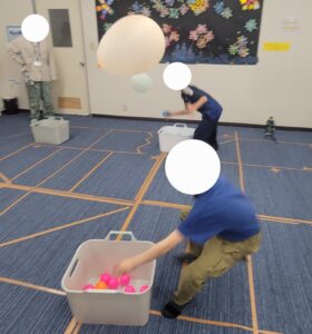 風船を上へ投げる→ボールを拾う→風船が落ちる前にキャッチ!