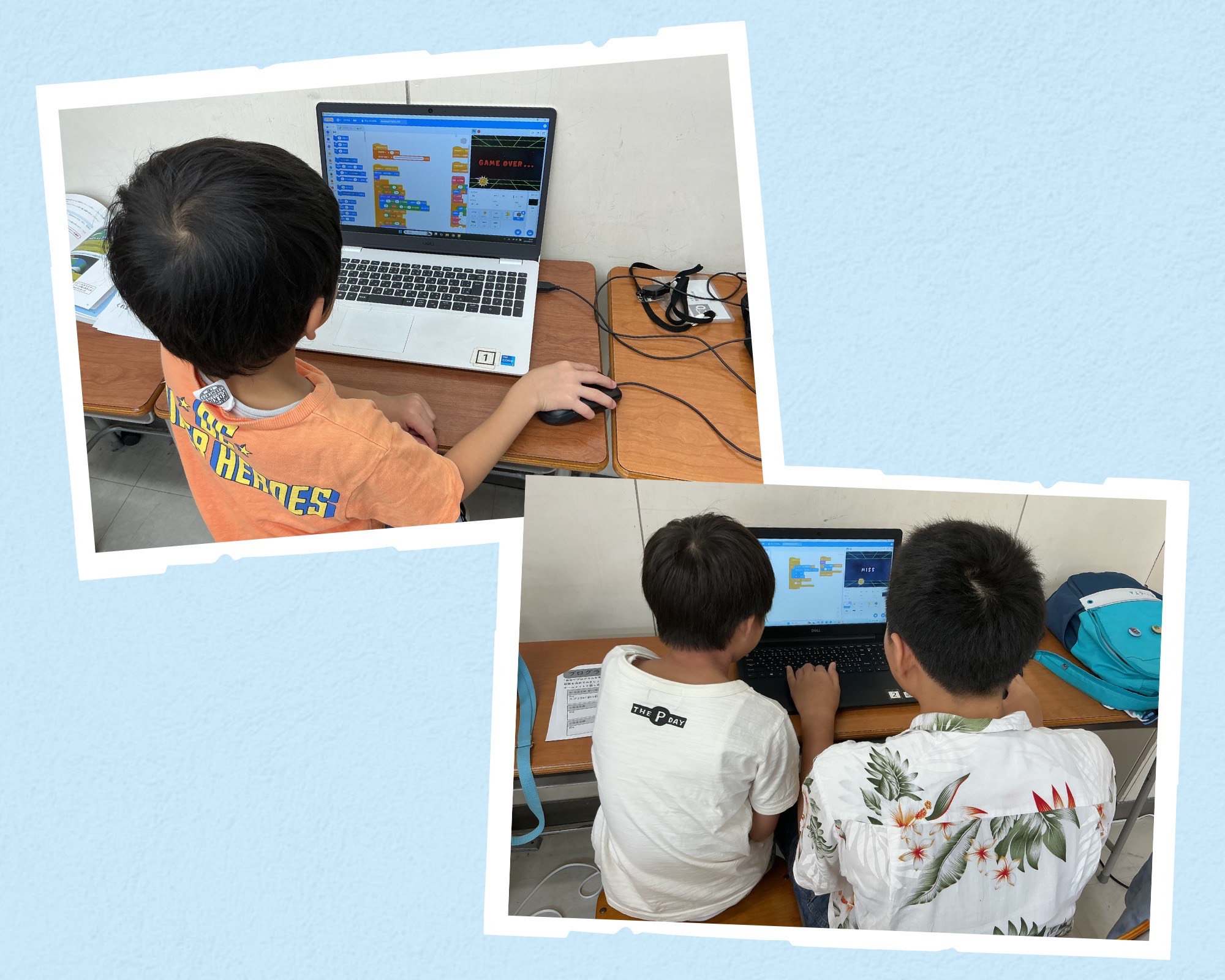 ビームが必ず隕石に向かうようにしたり、プレイヤーの動く速さをとても速くしたりするプログラムをつくることができました👏