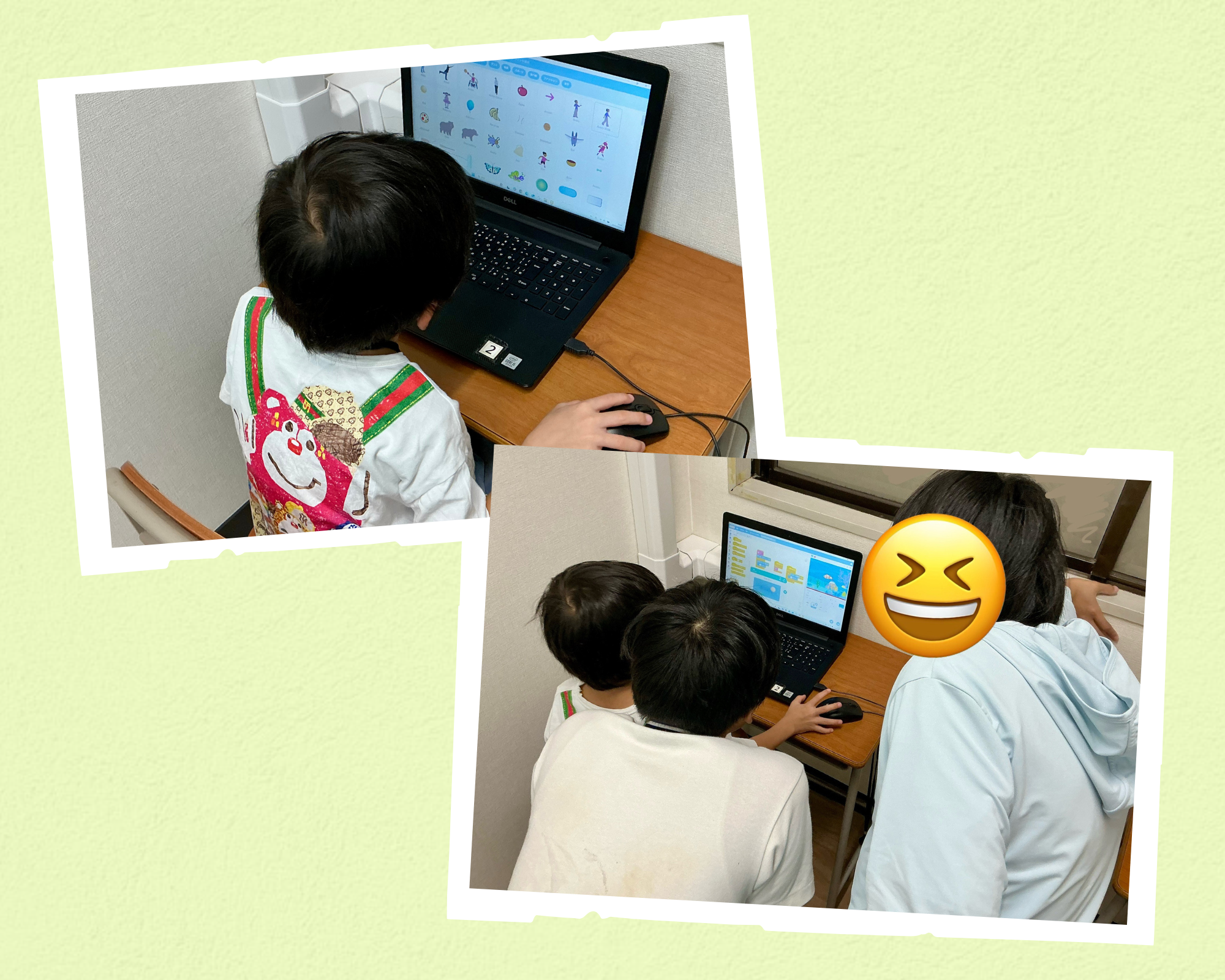 教材の中にあるイラストを上手に使い、魚が泳ぐゲームをつくっていました😆